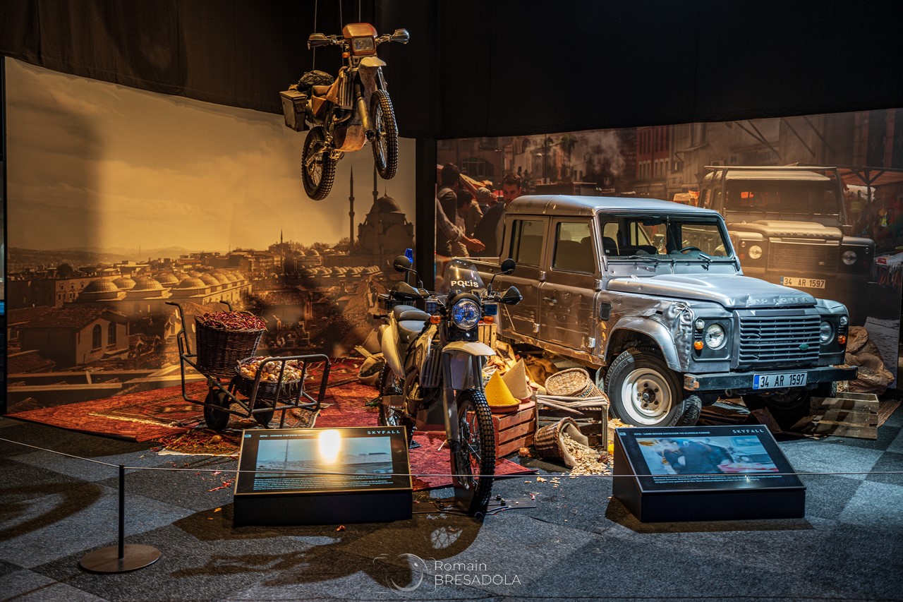 A Bruxelles, il n’y a pas que les frites et les gaufres, il y a aussi une expo temporaire consacrée à James Bond, et plus particulièrement à tous les véhicules que le célèbre agent britannique a utilisé (ou explosé), et plus généralement les divers moyens de locomotion vus dans les films de la saga.
