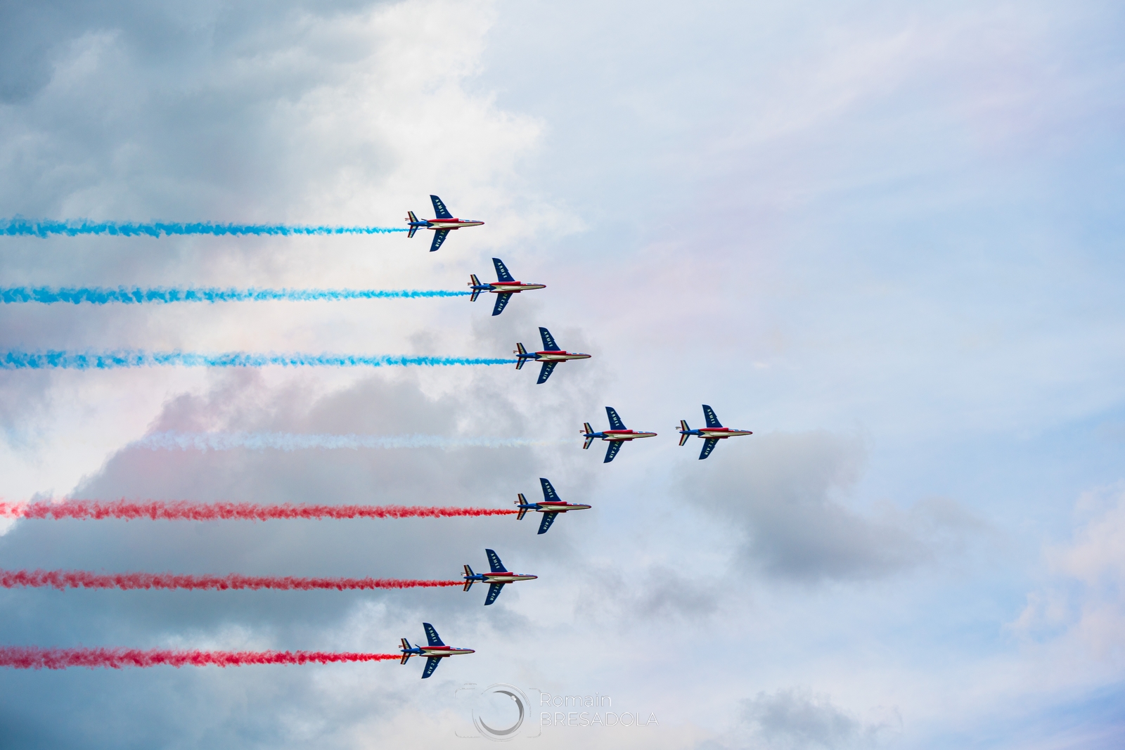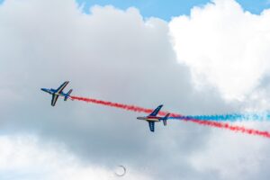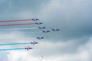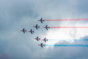 Répétitions PAF Mai 2023 Répétitions du show aérien de la Patrouille de France le 11 mai 2023 à l’aérodrome de Courcelles.